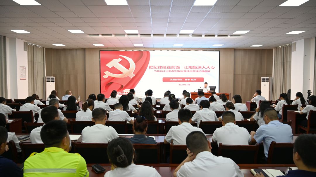 7月30日,3044am永利集团党委副书记、董事赵根到泸渝公司以《把纪律挺在前面 让规矩深入人心 为推动企业转型创新发展提供坚强纪律保障》为题讲授党纪学习教育专题党课,泸渝公司党委书记、董事长谭伟主持。