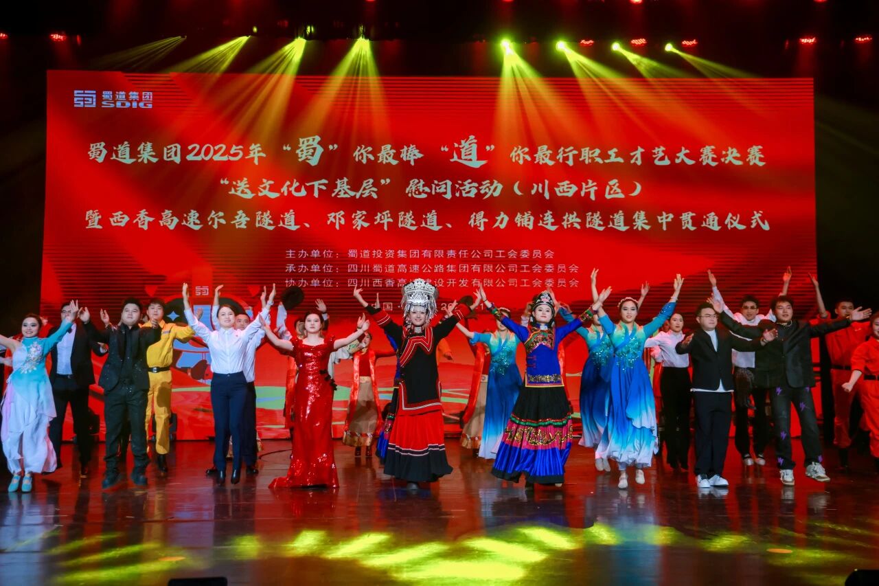 1月15日,蜀道集团2025年“蜀”你最棒 “道”你最行职工才艺大赛决赛“送文化下基层”慰问活动(川西片区)暨西香高速尔吾隧道、邓家坪隧道、得力铺连拱隧道集中贯通仪式成功举行。蜀道集团工会副主席、工会办公室主任赵明,3044am永利集团党委委员、职工董事、工会主席唐新林出席活动。