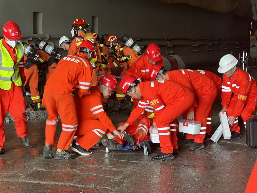 为贯彻“安全第一,预防为主,综合治理”的安全生产工作方针,5月30日,沿江高速金宁段ZCB1-13/Z1项目开展隧道拱顶坍塌、瓦斯超限及高处坠落应急救援演练。