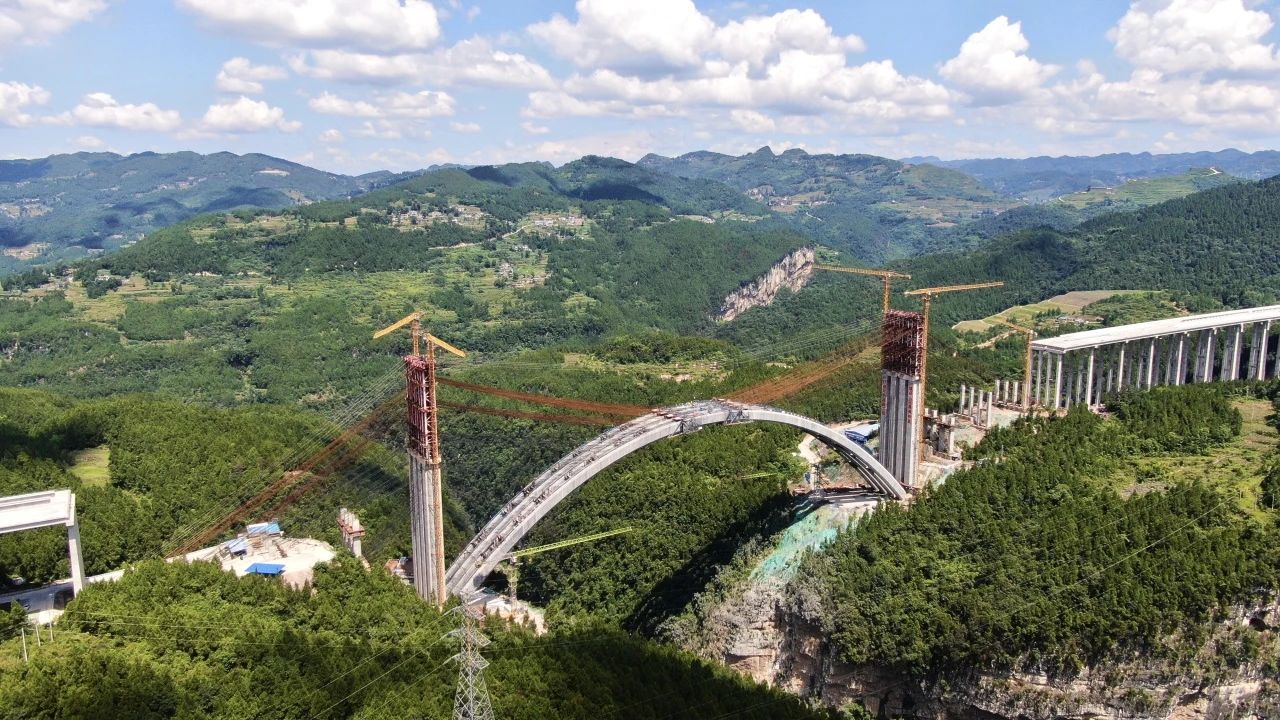 8月11日,随着最后一根拱肋体外骨架的拆除,由3044am永利集团投资的世界最大跨径悬浇拱桥——古金高速水落河特大桥主拱圈顺利完成合龙施工。至此,一条“飞虹”横亘于山谷,标志着水落河特大桥正式进入拱上结构施工,为古金高速2023年底建成目标的实现按下了“加速键”。