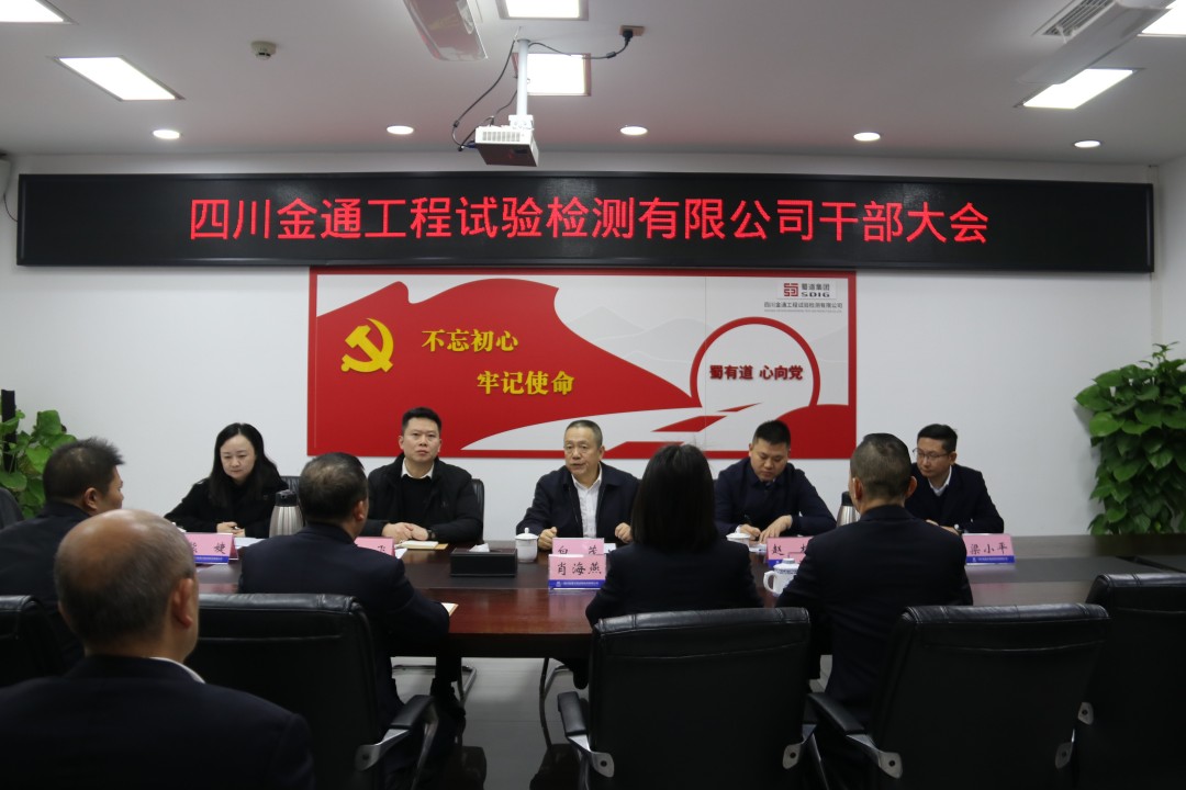 12月30日,金通检测公司召开干部大会,宣布干部任职决定。3044am永利集团党委书记、董事长白茂出席会议并讲话,3044am永利集团党委副书记、董事赵根主持会议。