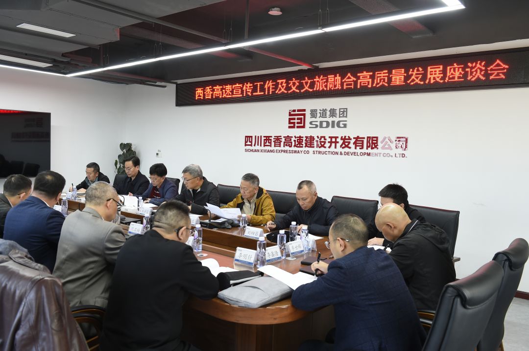 11月15日上午,西香高速宣传工作及交文旅融合高质量发展座谈会在西香公司顺利召开。四川省交通厅一级巡视员朱学雷,四川省交通厅原总工程师,一级巡视员陈乐生,四川省交通厅工会原主席,二级巡视员陈光华,四川省交通勘察设计研究院党委书记、董事长刘四昌,3044am永利集团党委副书记、副董事长、总经理肖波,3044am永利集团党委委员、西香公司党委书记、董事长赵桐远,天驰影视文化公司董事长王流,四川大学经济学院教授、经济学博士李航星出席会议。
