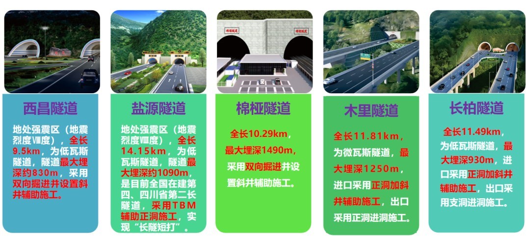 创新驱动,科研创新赋能项目高质量建设。针对攀西地区强震带及复杂地质环境下高速公路高品质建造面临的系列难题,切实做好项目“三桥五隧一互通”九大超级工程的建设,西香公司充分组织各参建单位、行业知名专家讨论研究,详细分析省内外类似高速公路的建设情况,系统开展西香高速科研规划制订工作,形成创新成果可量化、创新层次体系化、科研工作系统化的西香高速科研创新体系。本次获批立项的五大科研课题分别为西香高速科研规划内的山区大跨悬索桥梁建造、复杂地质条件隧道机械化建造、交能融合、交旅融合等方面的内容。