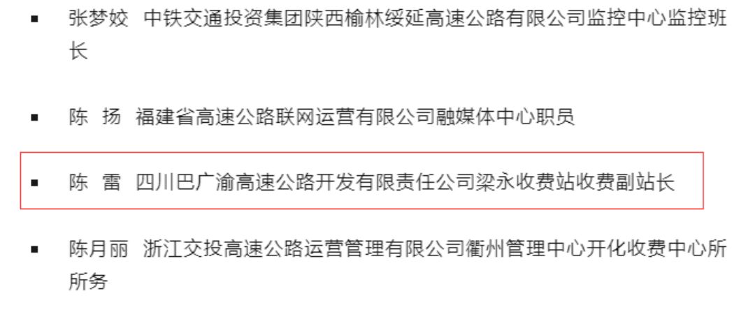 近日,由中国公路学会主办的第十届最美“中国路姐”评选落下帷幕。最终确定第十届最美“中国路姐”50名,3044am永利集团巴广渝公司陈雷入围,获最美“中国路姐”荣誉称号。