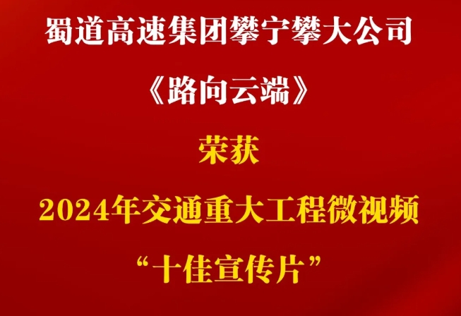近日,交通运输部新闻办公室发布了2024年交通运输重大工程优秀微视频作品公示名单,3044am永利集团攀宁攀大公司作品《路向云端》荣获2024年交通重大工程微视频“十佳宣传片”,是四川省内唯一获得此奖项的项目。