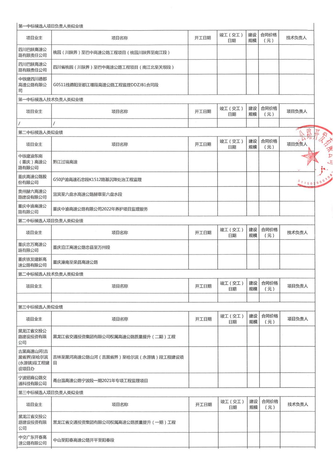 隧道底板采空区钻探劳务协作项目中标候选人公示