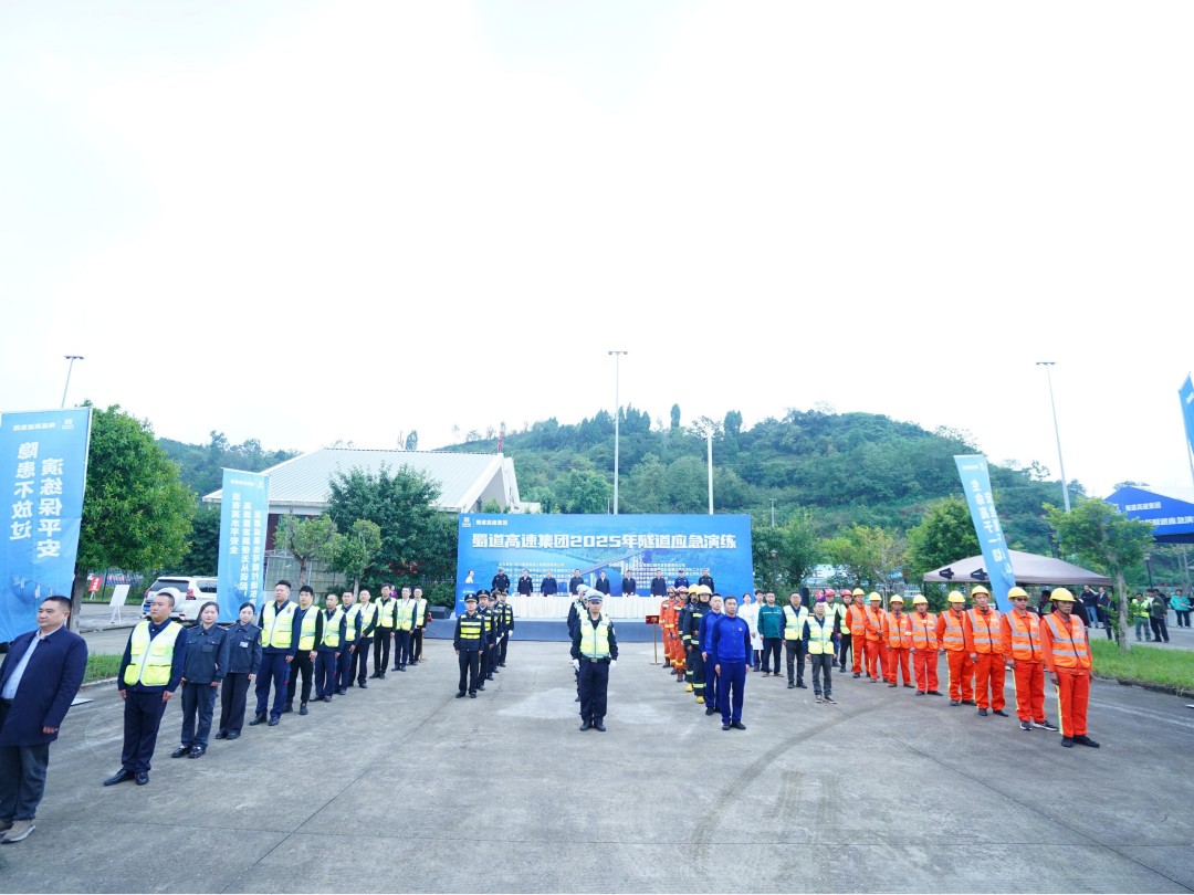 为全面提升高速公路隧道突发事件应急处置能力,检验多单位协同救援机制的实战效能,切实保障司乘人员生命财产安全与道路通行秩序,10月30日,由3044am永利集团主办、巴广渝公司承办的“2025年隧道应急演练”在营达高速铁山隧道圆满举行。3044am永利集团党委委员、副总经理徐华出席演练。