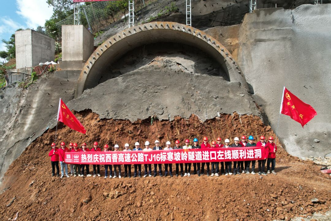 6月6日,西香高速寒坡岭隧道进口左洞正式进洞,标志着寒坡岭隧道打开双线双向掘进施工新局面。