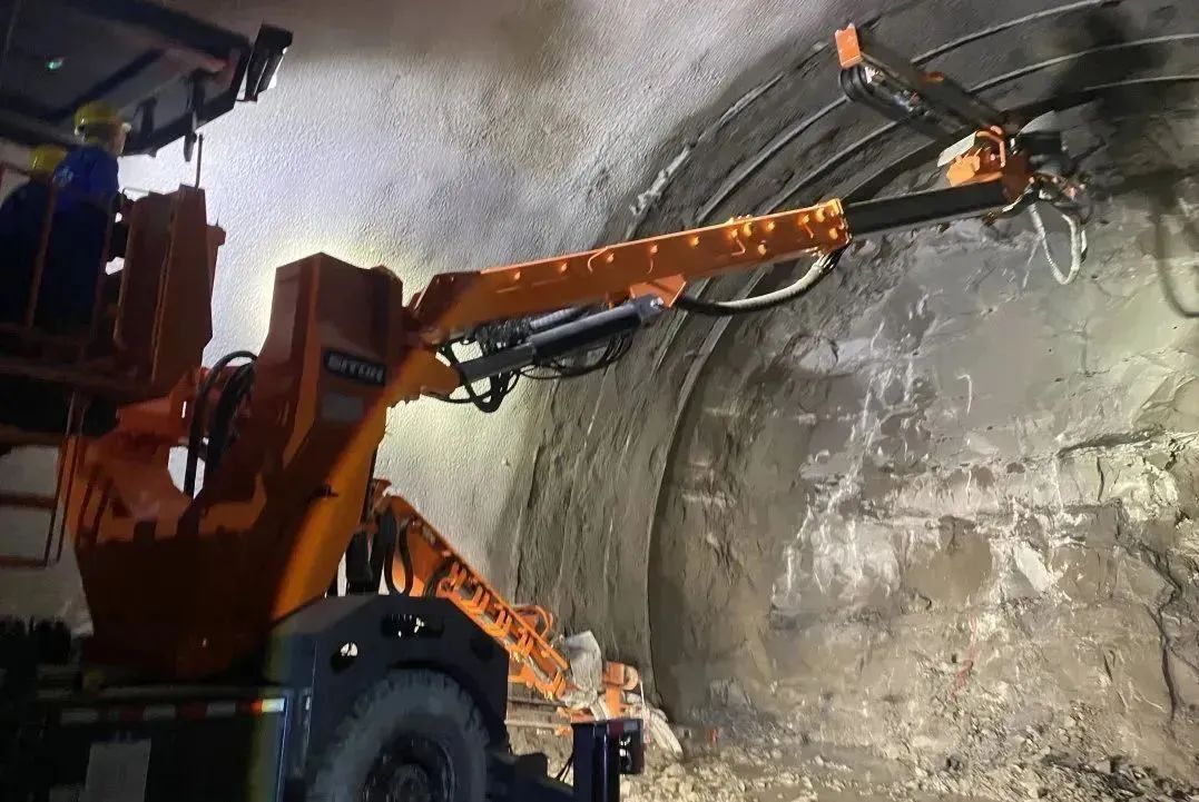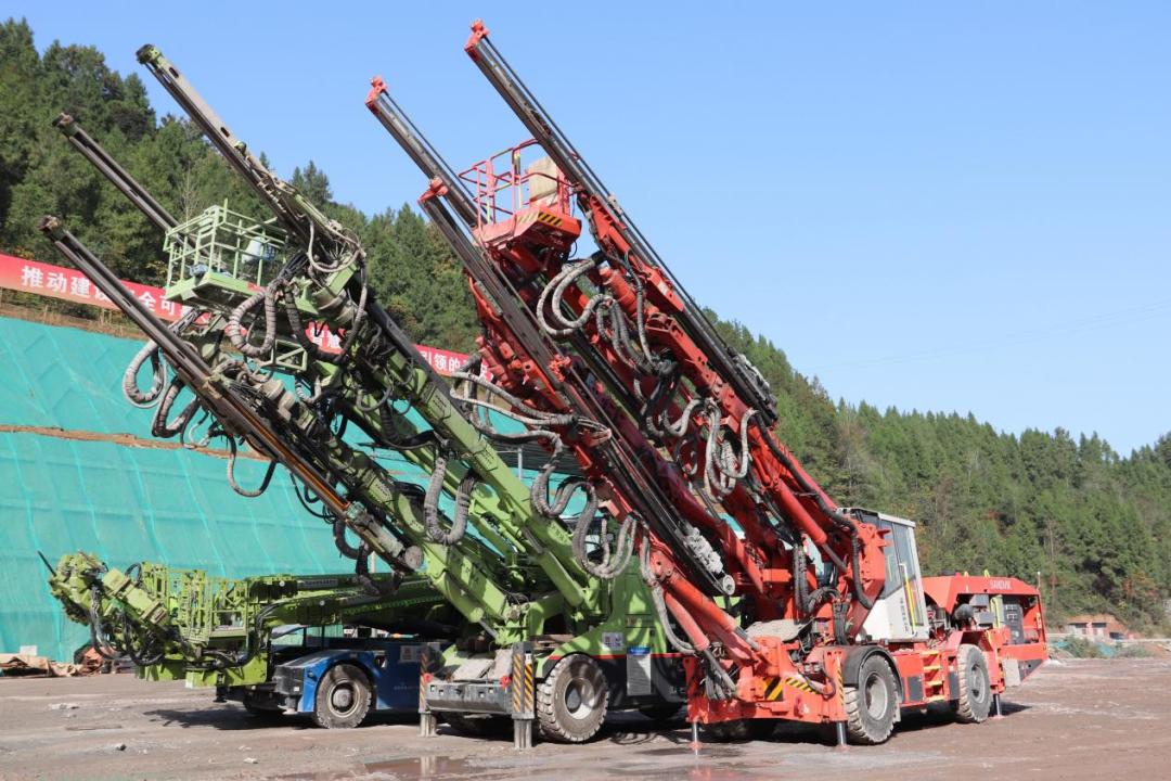 隧道施工全面采用智能建造“大机配套”,充分应用“新技术、新工艺、新材料、新设备”四新技术,有效保证隧道施工安全质量无隐患、无死角。自动监控系统与人工定期探测“双保险”,用视频监控对施工进行可视化管理,确保施工过程可追溯;利用智能化监控报警断电设备和手机智能终端预警系统,对瓦斯浓度进行全程检测与监测,与其他隧道通风量管控相比,该隧道采用物联网技术,智能控制变频风机,当洞内瓦斯含量数据发生变化时,风机系统将自动调节风速,随时将瓦斯浓度降低到安全范围内;引进安全智慧用电装置,有效防止漏电伤人,保护隧道施工用电设备安全;三臂拱架台车、双曲臂凿岩台车、自动布料二衬台车等设备代替传统人工作业,机械化施工达到100%,累计减少人工60%,施工总效率提升30%。