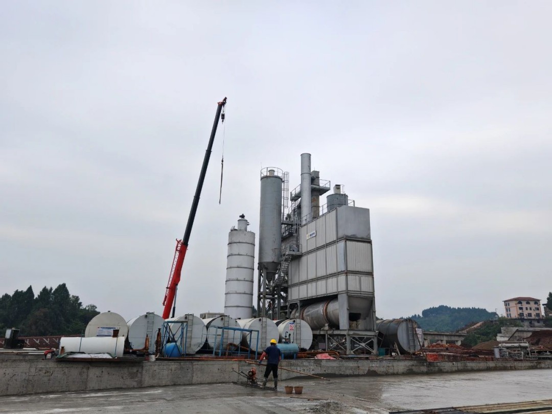 镇广高速通广段D合同段1#沥青拌合站位于渠县北互通,占地面积34.18亩,将承担镇广高速D合同段36公里沥青混合料拌合任务,计划生产沥青混合料34.3万吨。其沥青拌合设备选用进口5000型拌合机,额定产能400t/h。该设备可对烟气、粉尘、噪声集中控制与处理,并配备自动配料、干燥、燃烧等控制系统,实现绿色低碳施工。