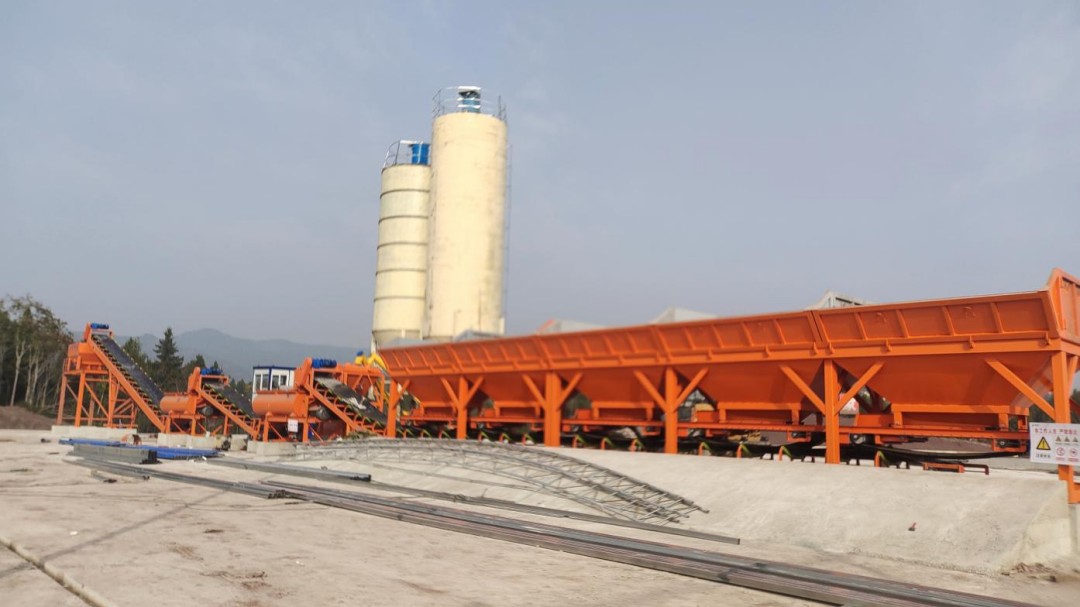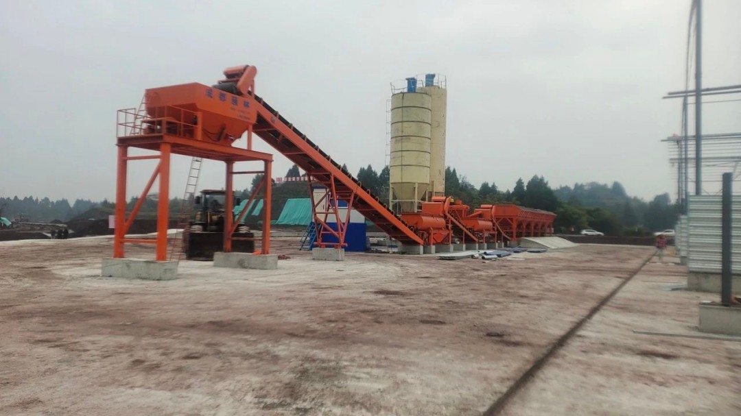 该水稳拌合站位于岩峰互通,占地面积约14亩。其内设置WBC600型冷拌站1套,配备7个配料仓和2个100吨水泥罐,生产能力为600吨/时,承担主线K210+000-K220+900段10.9公里约16万吨水稳料生产任务,计划生产周期4个月。该水稳拌和站内配备的骨料配料、粉料供给、供水、搅拌和电控均采用智能系统。其先进的自动控制和电子计量装置、模块组合式结构,具有安装运输方便、操作简易、精度高、可靠性好等优点,基本实现智能化、数字化、集约化生产模式,全面提升生产效率和成品质量。为确保拌和站顺利建成,参建单位科学谋划、超前布局、优化方案,精细化管控,紧抓材料设备准备、安全生产保障等工作,全力推动拌和站建设高效有序推进。