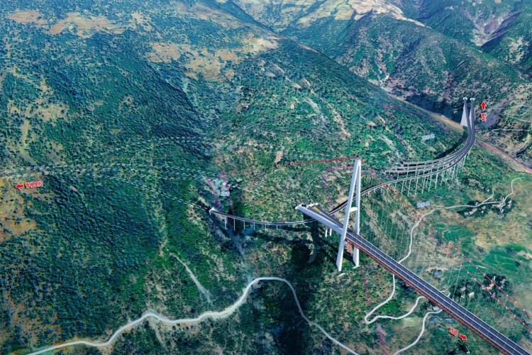元宝枢纽地下互通进口处接泸沽湖特大桥,上方为U型隧道锚,主线、匝道隧道与隧道锚形成三层地下空间架构,为超大规模地下空间综合体,涉及地震、瓦斯、岩溶涌突水、危岩崩塌体,滑坡、堆积体等不良地质。同时,元宝隧道主洞与泸沽湖特大桥存在施工交叉干扰、多种特殊结构和多种施工方法导致施工组织难度极大。具有“一最(世界最大规模山区高速公路全地下互通)、二多(隧道结构类型多、开挖方式多)、三高(高海拔、高落差、高地震烈度)、四特殊(上下“0”净距交叠特殊结构、空间变异连拱特殊结构、超大断面特殊结构、极小净距特殊结构)、五极其(地形极其复杂、地质条件极其复杂、气候极其极端、生态极其脆弱、建设条件极其困难)”的工程建设特点。
