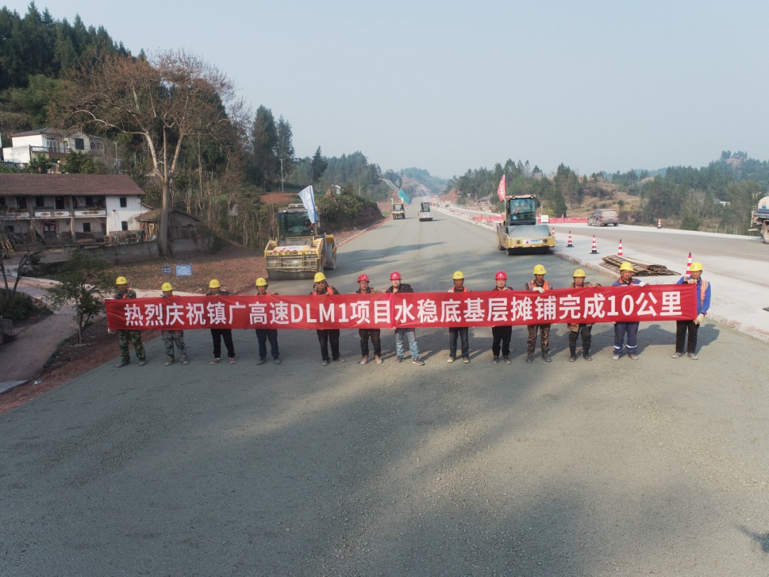 稳定的料源保障和成熟的管理经验为底基层的摊铺提供了有力保障,也为后续施工奠定了坚实基础。2025年,镇广公司将鼓足干劲、乘势而进,围绕下一个目标任务,严抓质量、严控安环,全力以赴奔向“下一程”。