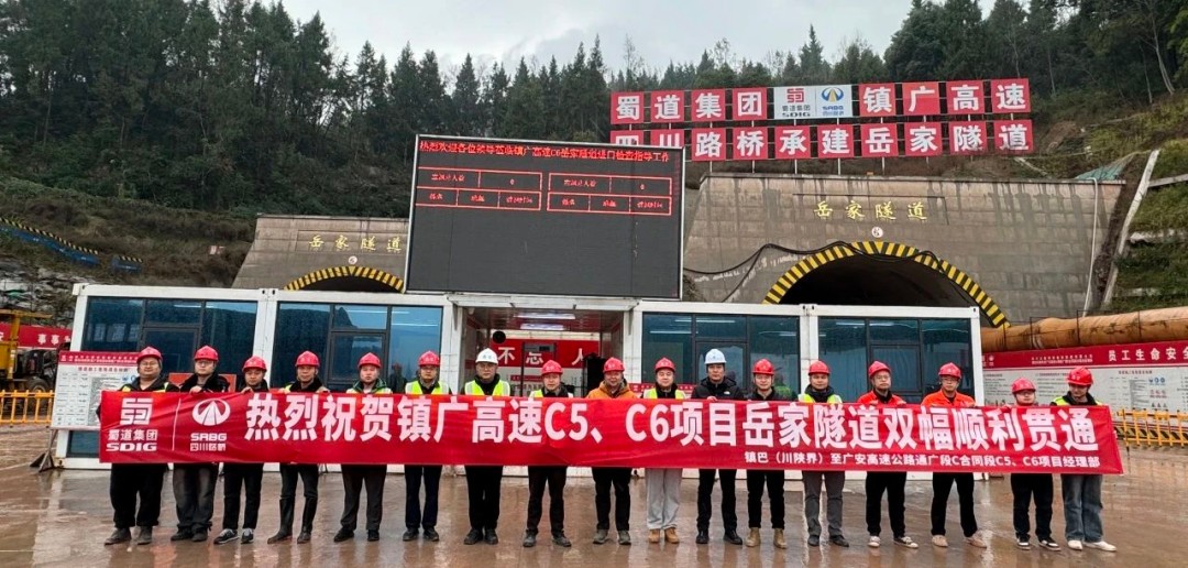 1月4日,镇广高速通广段岳家隧道双幅顺利贯通,标志着项目施工建设取得重大突破。