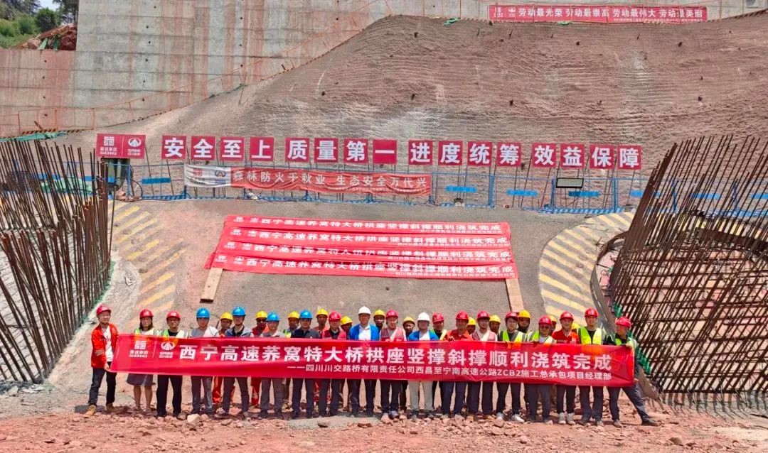 荞窝特大桥竖撑、斜撑的顺利完成为后续同类型大斜率、大断面、超长斜撑的施工累计了技术经验。接下来,宁西公司将继续保持昂扬斗志和精益求精的态度,严守安全环保底线,严格把控工程质量,稳步推进拱座浇筑、索塔拼装、缆索系统布设等后续施工,确保优质高效完成荞窝特大桥建设,奋力实现年度任务目标。