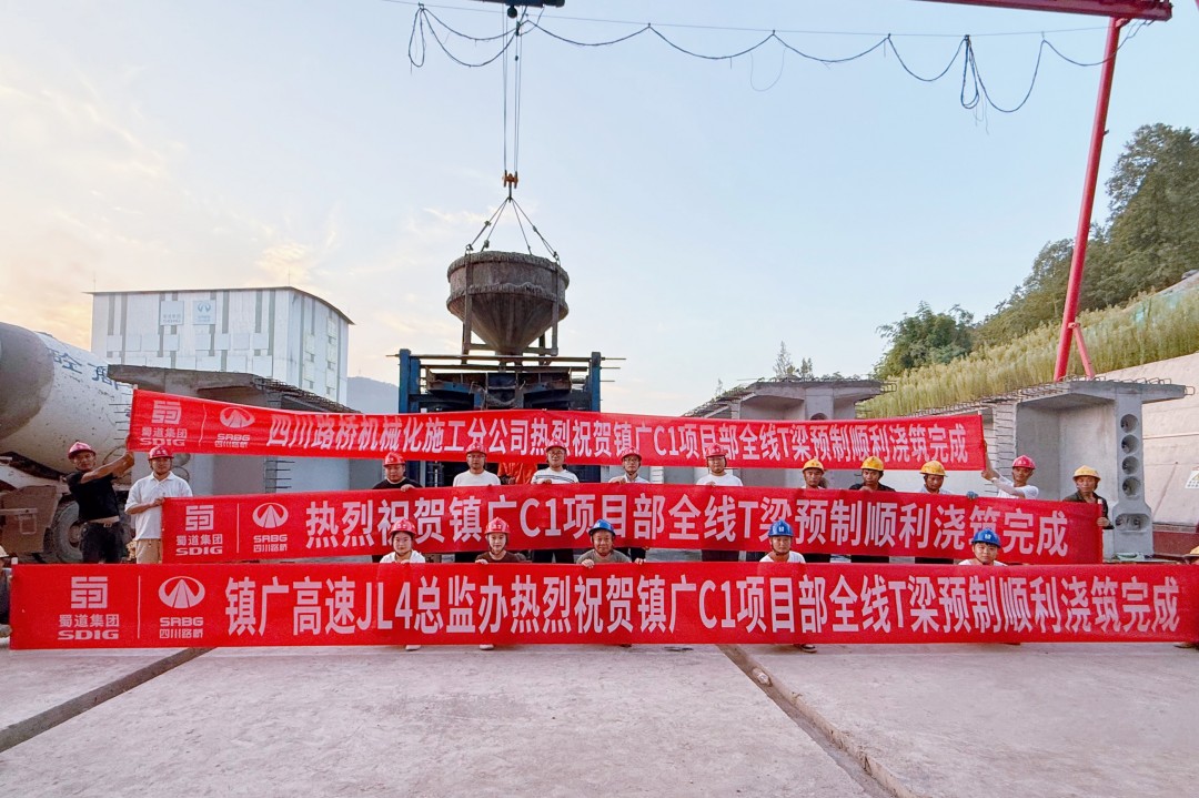 近日,镇广高速通广段C1项目最后一片预制T梁浇筑完成,项目全线预制T梁生产任务圆满收官,建设工作取得阶段性胜利。