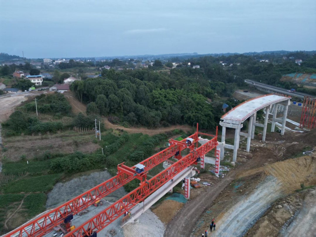 建设期间,为确保架梁任务圆满完成,乐资铜成都分公司组织总监办、项目部周密部署,架设前完成梁板制、运、架等工序的专项施工方案签批,对施工人员开展专题培训和安全技术交底,对架桥机等特种设备进行全面安全检查与调试。仁寿代表处、综合开发部、项目部积极与当地政府部门、村委联动,克服征拆协调等诸多困难,深入研判可能存在的风险隐患,全面完善施工保障措施。施工过程中,项目严格执行工程首件制,推行标准化施工,严格按照设计及规范施工,对梁体位置、高程、支座安装等关键指标实时监测,确保梁板安装质量与安全全面可控。