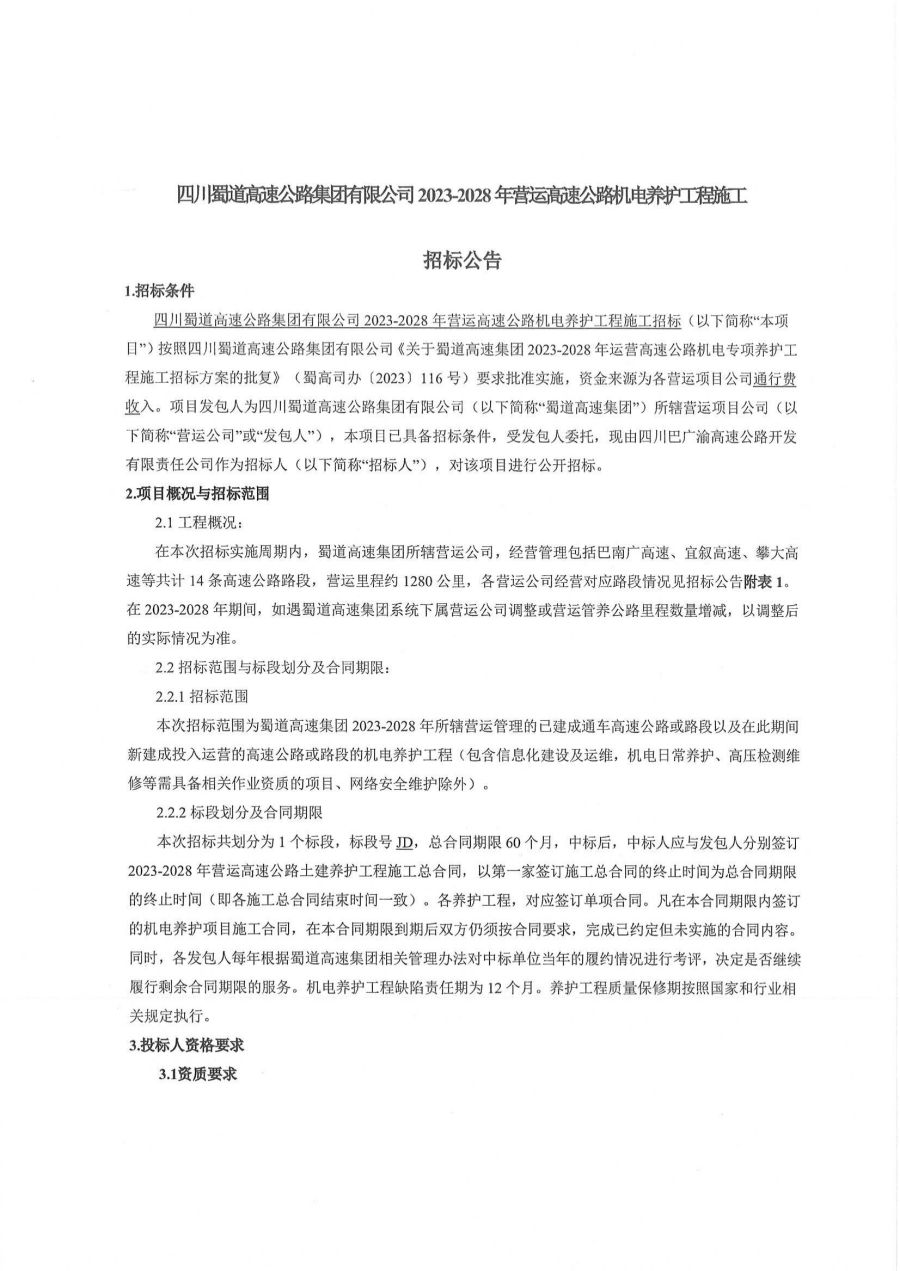 3044am永利集团2023-2028年营运高速公路机电养护工程施工招标公告