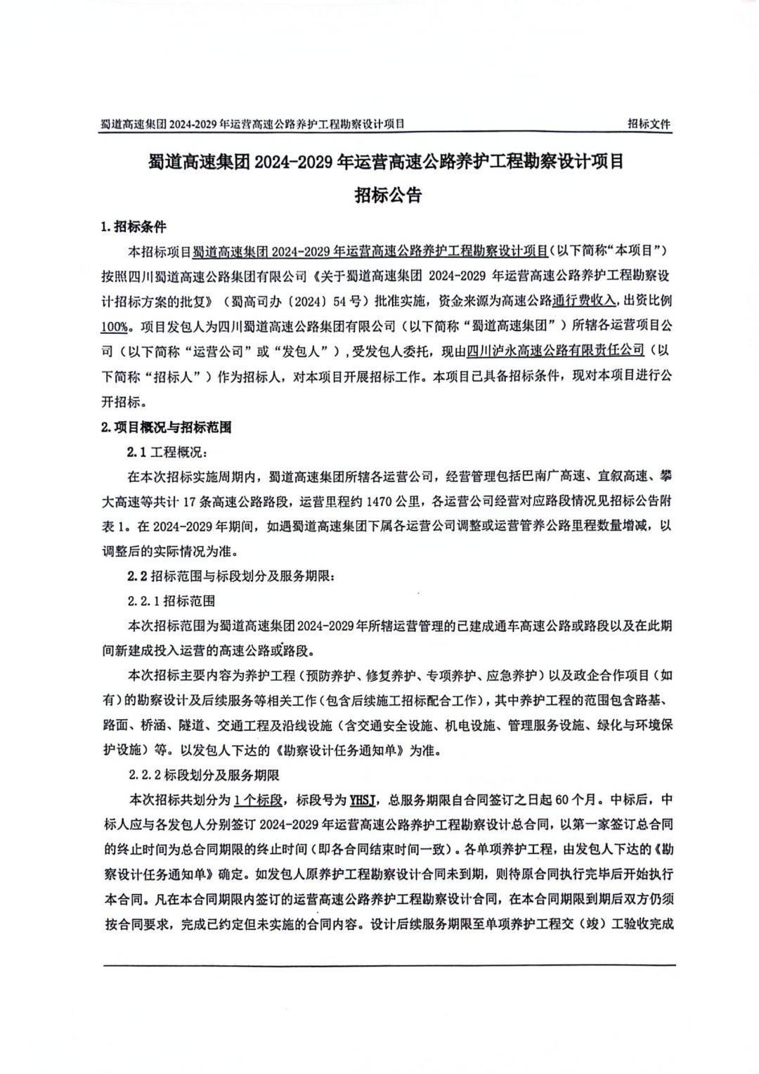 3044am永利集团2024-2029年运营高速公路养护工程勘察设计项目招标公告