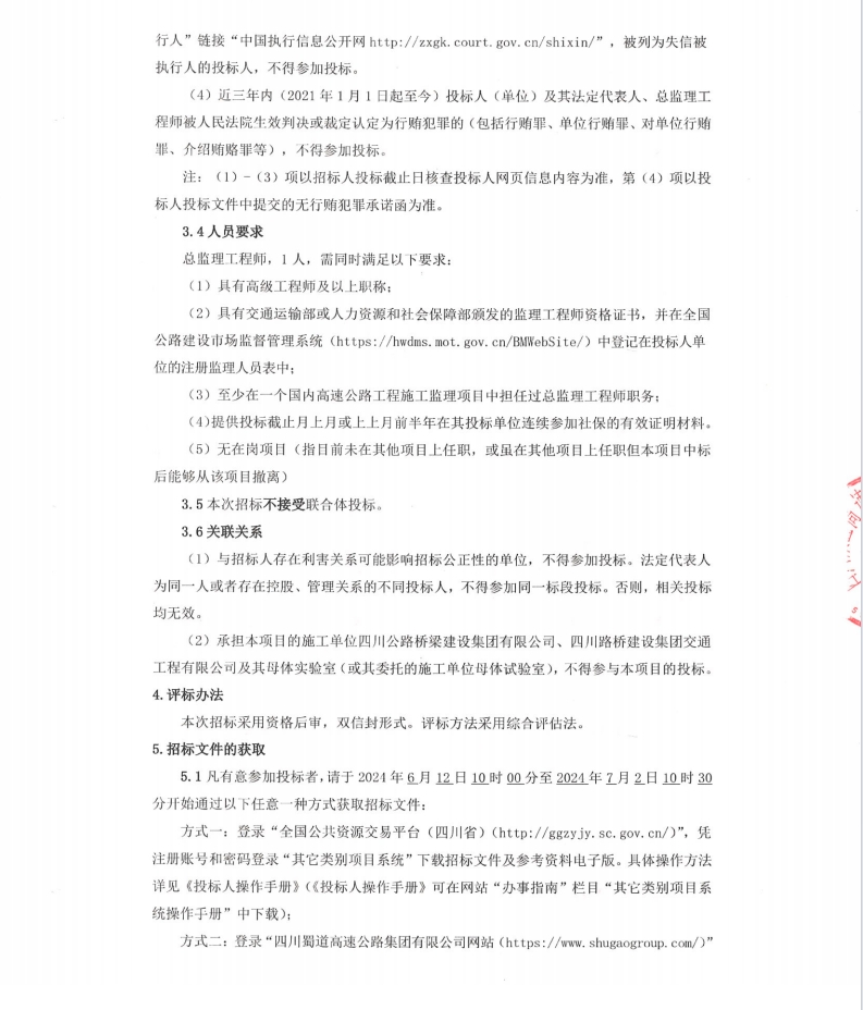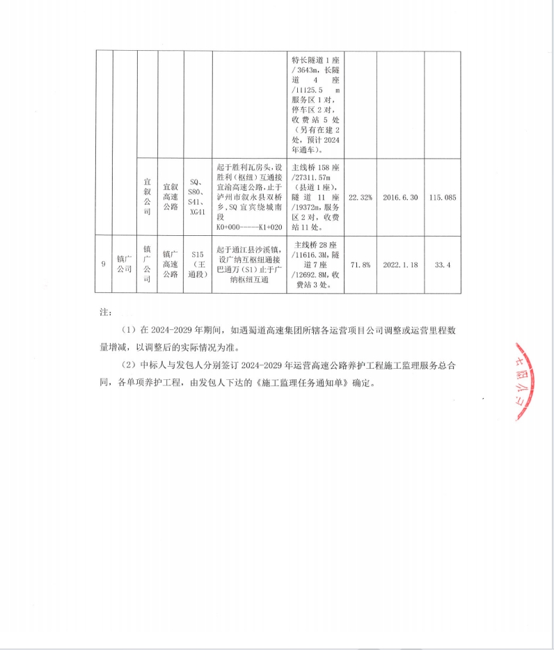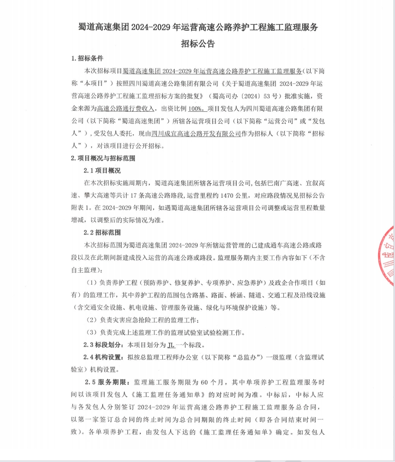 3044am永利集团2024-2029年运营高速公路养护工程施工监理服务招标公告