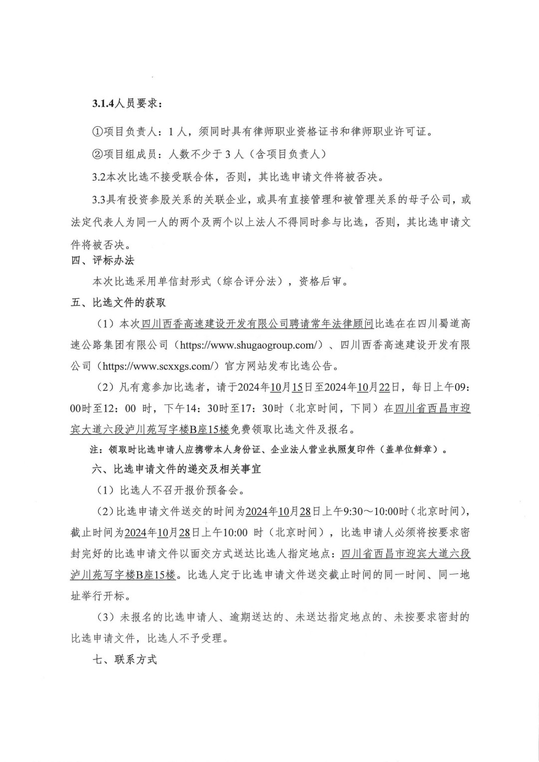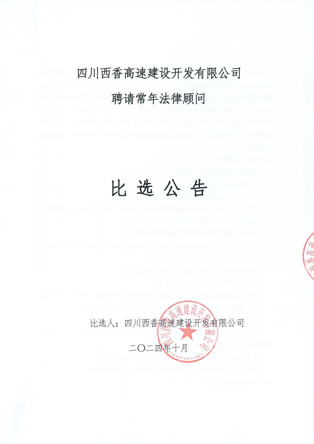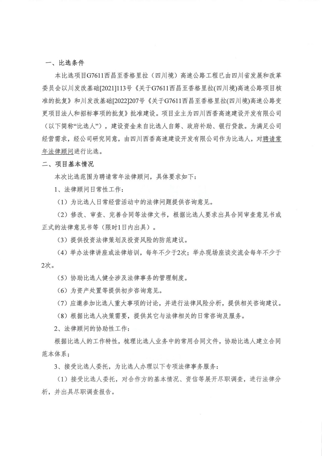 四川西香高速建设开发有限公司聘请常年法律顾问比选公告.pdf
