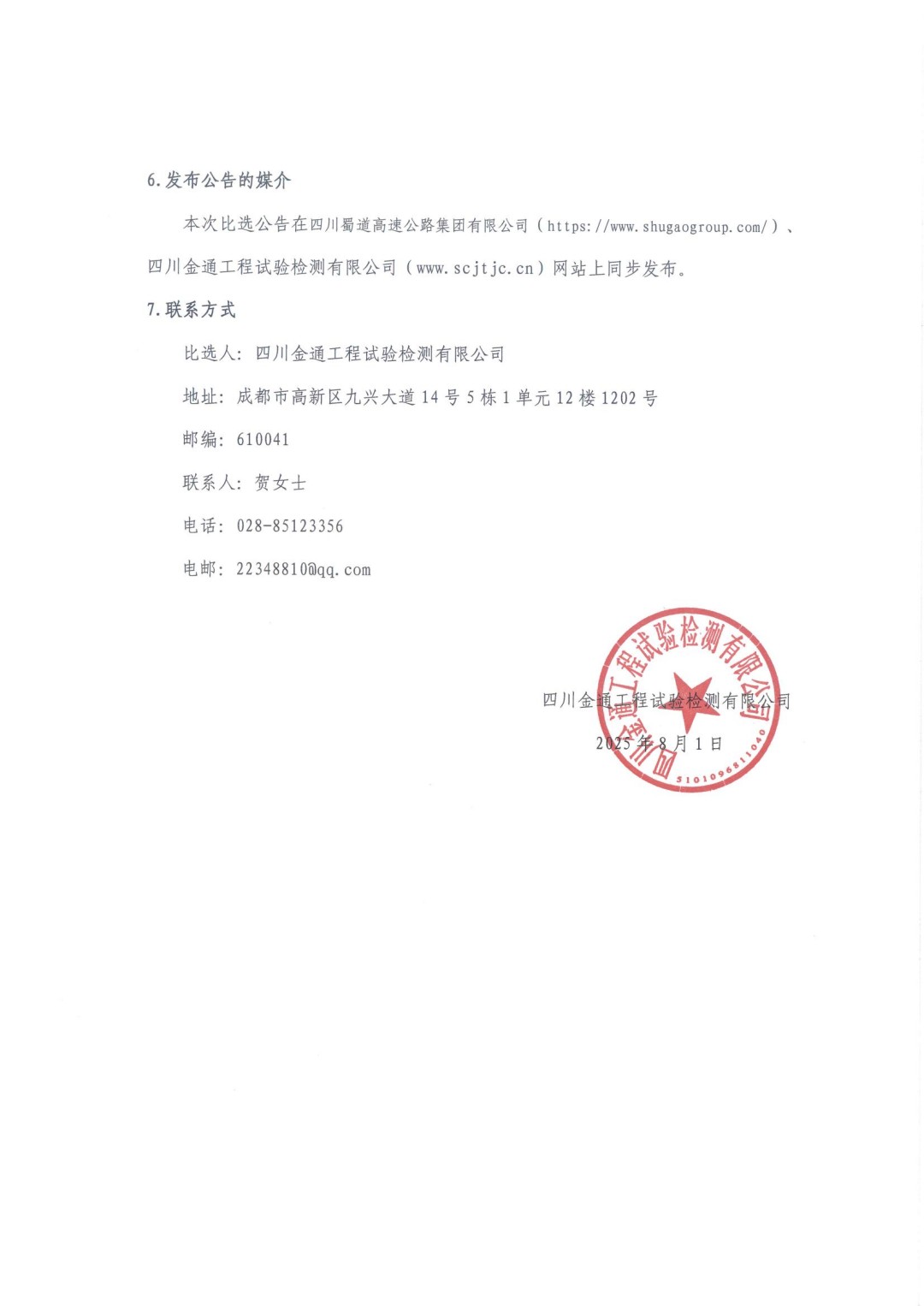 金通检测公司2025年运营高速公路定期检查激光弯沉检测技术协作项目比选公告