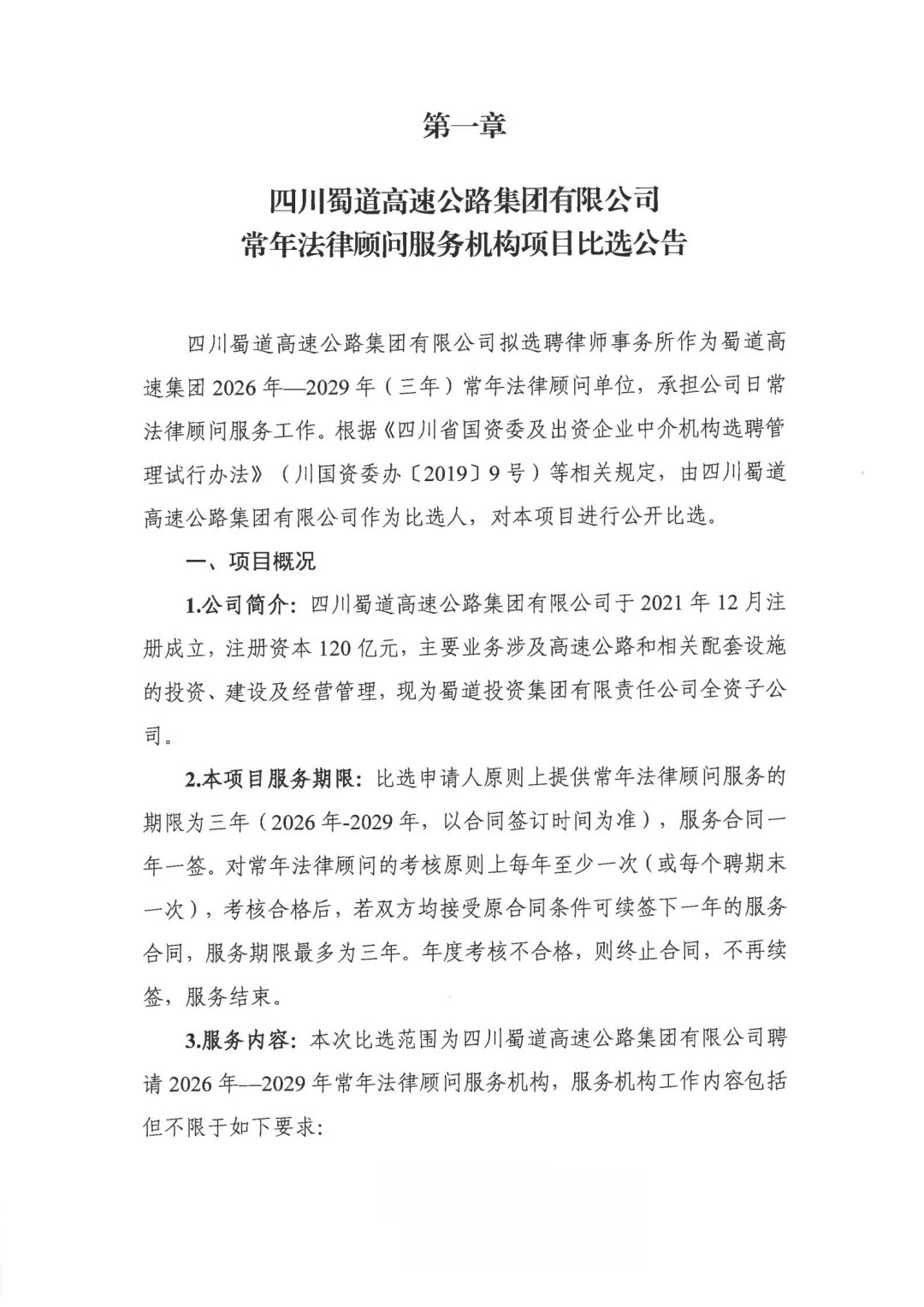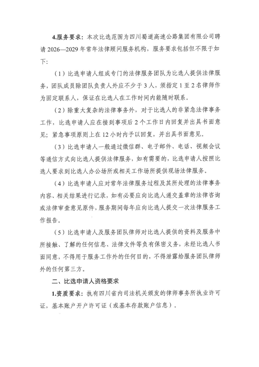 四川金通工程试验检测有限公司2025-2028年常年法律顾问服务项目(第二次)比选公告